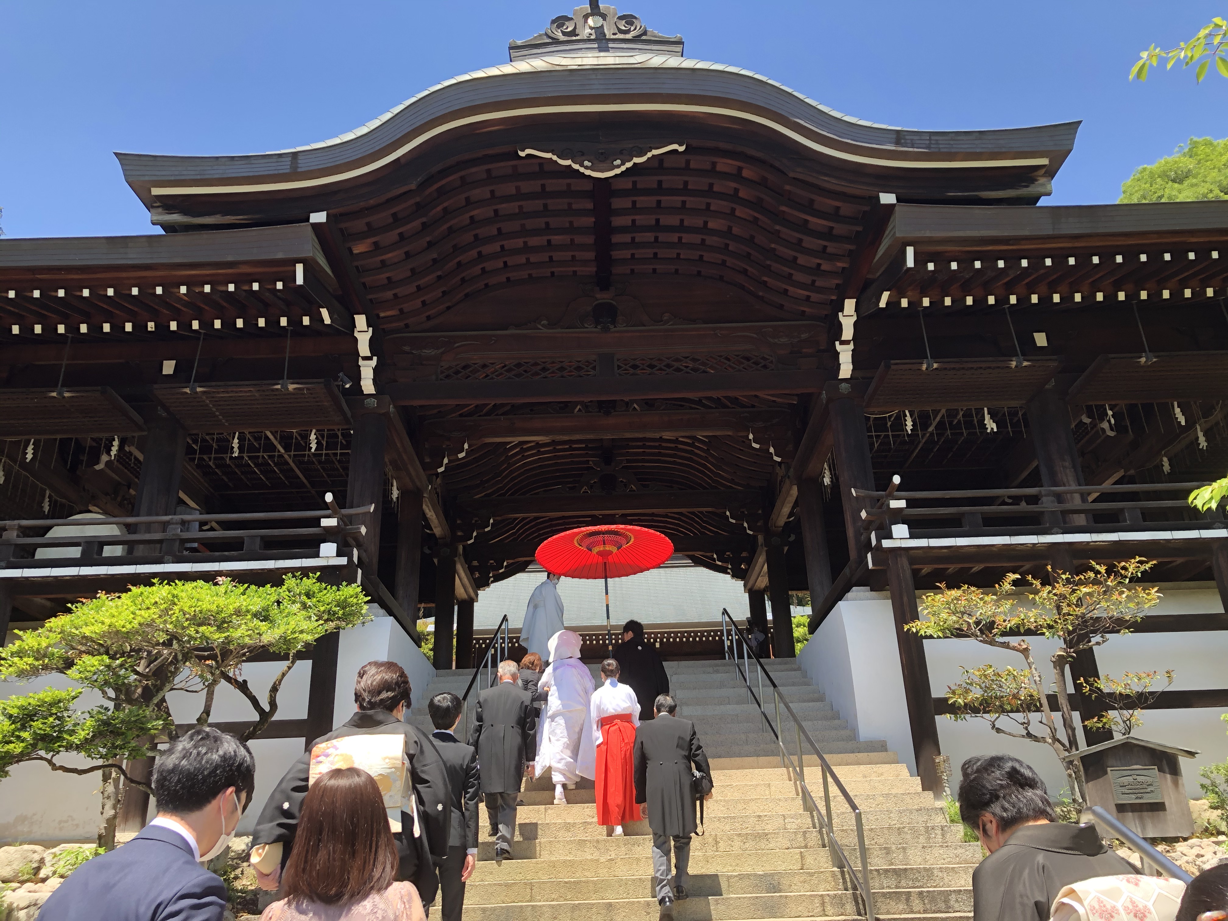 梅雨の晴れ間の5月31日 近江神宮本殿にて結婚式が行われました コロナ禍というこもありご家族のみでの結婚式・会食会での開催となりました