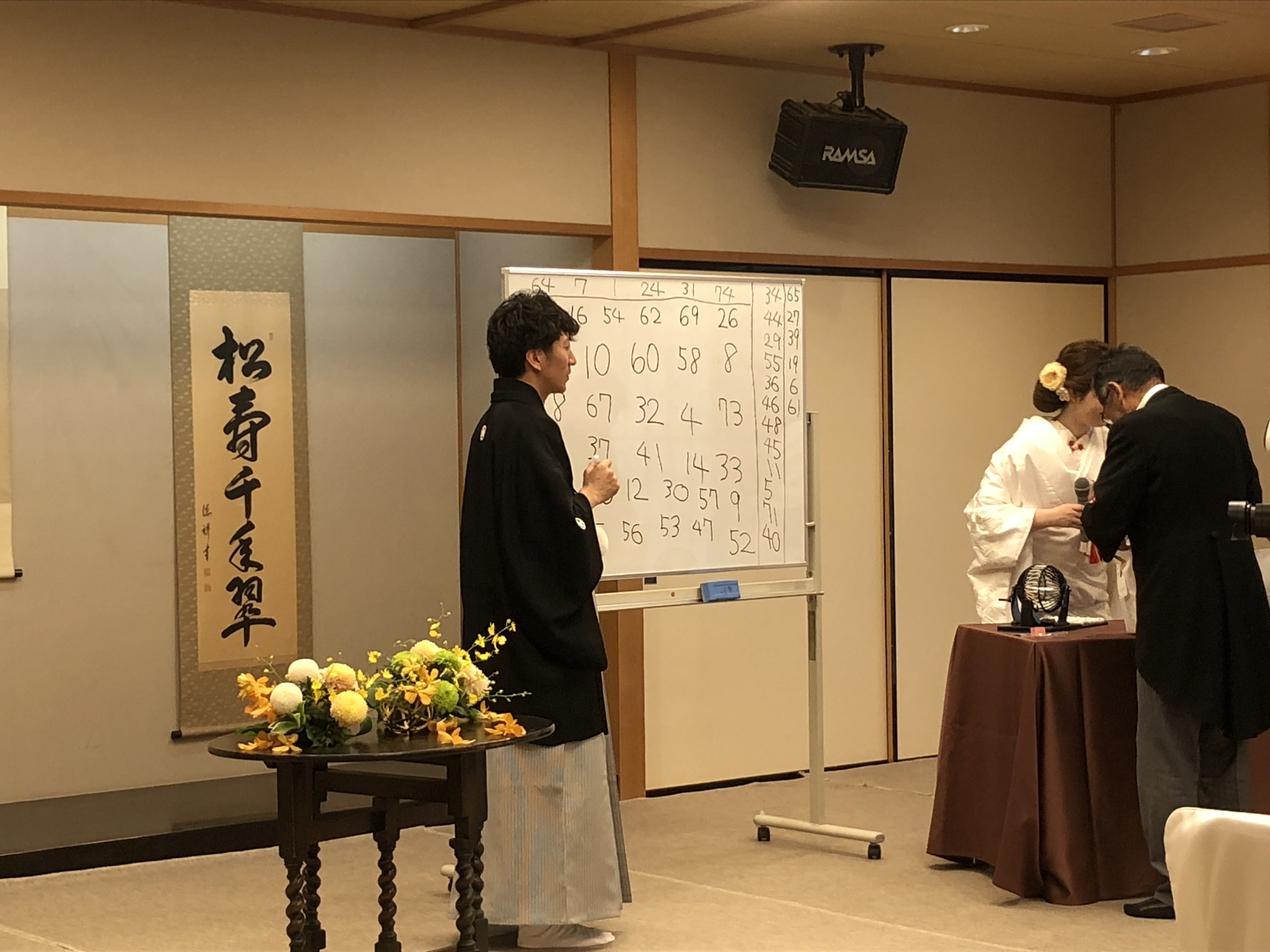 会食会のなかではビンゴゲームをお二人が開催されみなさんに豪華商品をご準備されていました 和気藹々とした時間は流れアットホームな会食会となりました